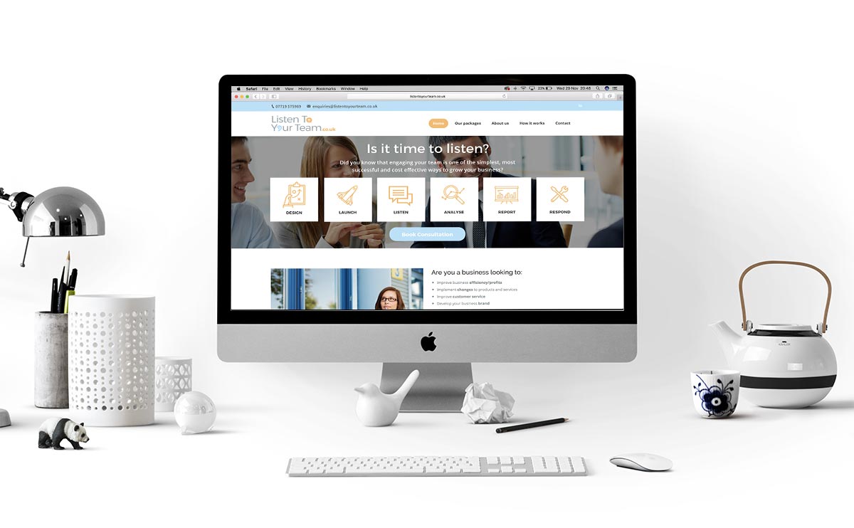 We provided Listen To Your Team with idea generation, business solutions, business cards, brochure creation, website development and logo creation. This has enabled Kaye to increase awareness of her business and its services, as well as raising the profile of Listen To Your Team....